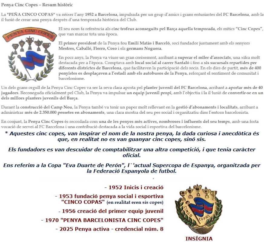 CIRCULO BARCELONISTA / PEÑA SOLERA / PEÑA BLAUGRANA / ALIRÓN / CINCO