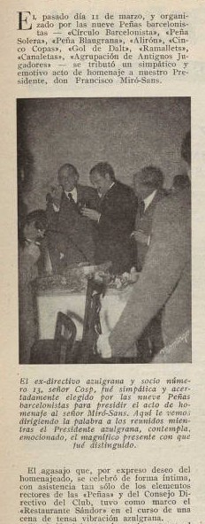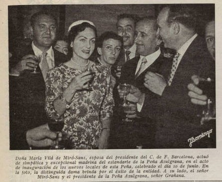 ![]() "Peña Azulgrana" (1955), inauguració de nou local social per part de Doña María Vilá de Miró-Sans, esposa del president del C. de F, Barcelona. |