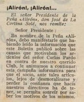 ![]() "Peña Alirón" (1955), comunicat del seu president José de la Cortina Solé. |