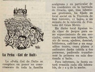 ![]() "Peña Gol de Dalt" (1955), nou local social a la Tavessera de Sant Antoni 12 baixos. |