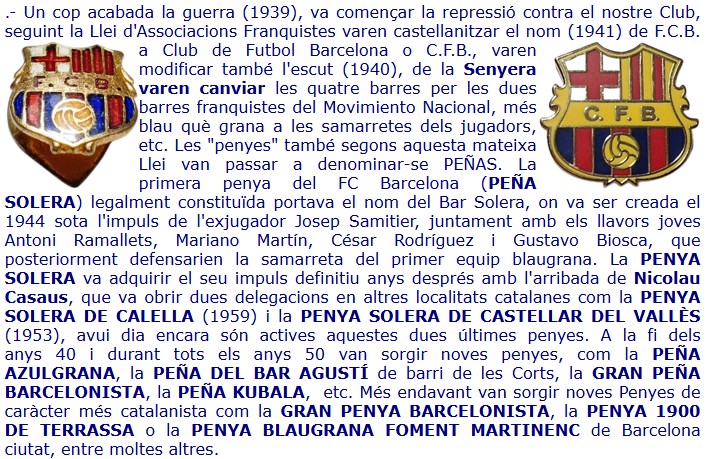 CIRCULO BARCELONISTA / PEÑA SOLERA / PEÑA BLAUGRANA / ALIRÓN / CINCO