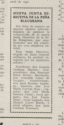 ![]() "Peña Azulgrana" (1955), nova Junta Directiva amb la presidència de Joaquin Grañana. |