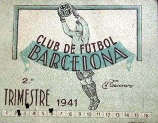 Als inicis de 1941 i dintre de les reformes engegades pel Movimiento Nacional, es va impulsar la substituciò de l'acrònim "F.C.B." del Club (ho consideraven un anglicisme) i van voler espanyolitzar la denominaciò del Club, que va passar a anomenar-se "Club de Futbol Barcelona" (C.F.B. o C. de F. Barcelona, a l'escut desprès) però abans van fer tota una sèrie de pobres per tal d'imposar el canvi dràstic de nom al Club, (el 1940 ja s'havia produït un primer canvi de la Senyera per les dues franges franquistes), primer van intentar amb BARCELONA FUTBOL CLUB (B.F.C.) en el primer trimestre del 41, però també es va considerar fer "un castic més gran" i van provar posar el de "ESPAÑA FUTBOL CLUB (E.F.C.)" la resta del 41, "algú" internament va parar tota aquesta boixaria del Règim i aquesta última denominació no var tirar endavant, el 1942 va néixer amb l'acrònim C.F.B. i ja fins a l'any 1974, que per motius del 75 aniversari es va aconseguir recuperar la Senyera i l'acrònim F.C.B. |