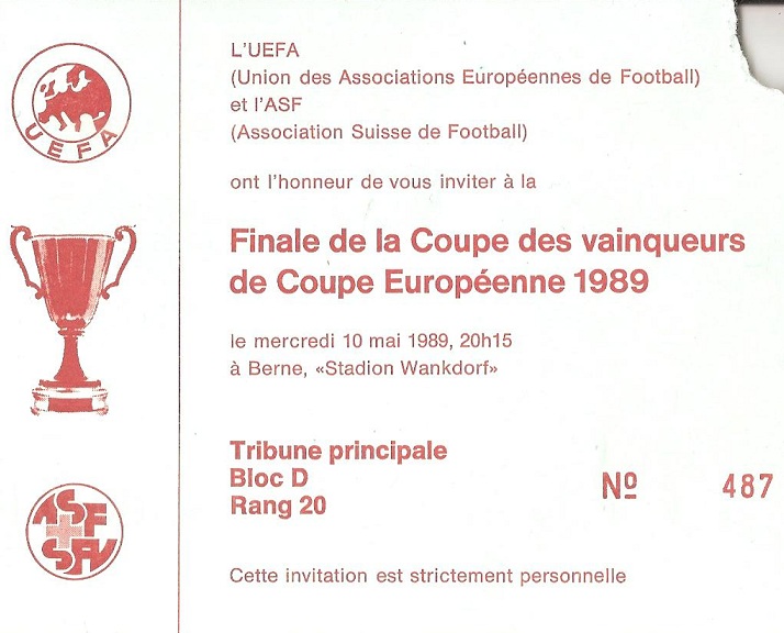 ENTRADA EUFA VIP FC BARCELONA - UC SAMPDORIA GENES Final Recopa d'Europa - 10 maig 1.989 Stadi du Wankdorf / Berna