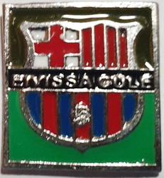 HUELVA / ALMONTE / P. BARCELONISTA "20 DE MAYO" DE ALMONTE, error de fabricación, en el pin se puede leer AYAMONTE y esa población solo existe la PEÑA BARCELONISTA "JOAN GASPART" de Ayamonte.