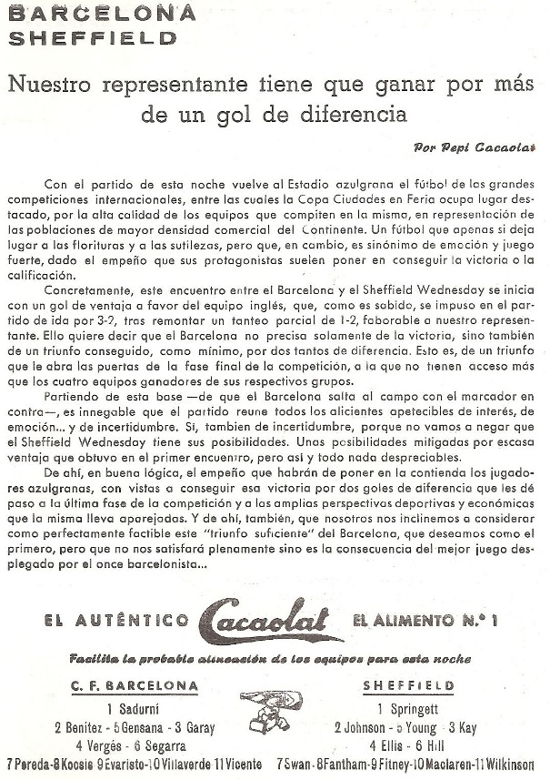 FC BARCELONA - Sheffield Wed. 2-0 |